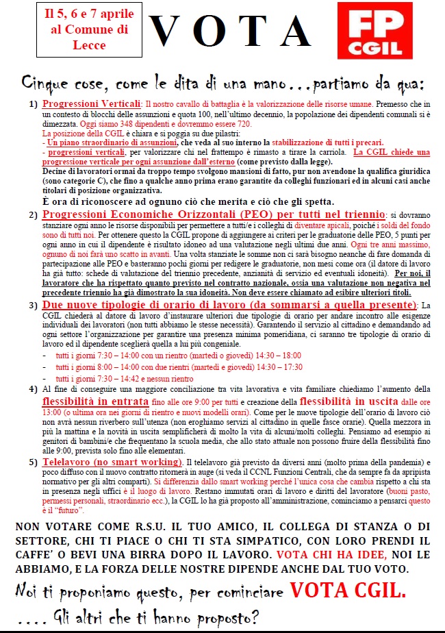 SI COMUNICA CHE LE OPERAZIONI DI SCUTINIO SI TERRANNO IN DATA8 APRILE 2022 a partire dalle ore 9,00 presso la Sala Consiglio sita al piano primo di Palazzo Carafa. Lecce, […]